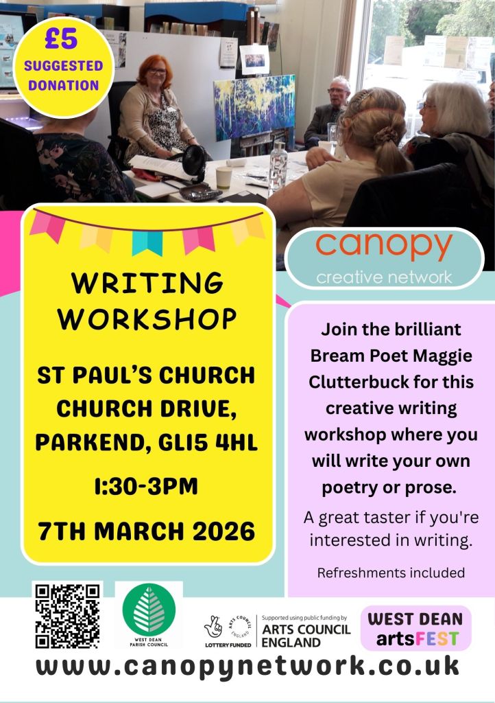 Join the brilliant Bream Poet Maggie Clutterbuck for this creative writing workshop where you will write your own poetry or prose. A great taster if you’re interested in writing.
