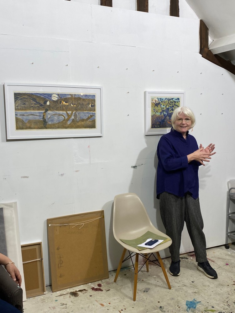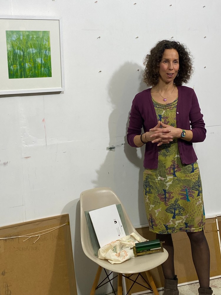 Printmaker Melanie Clarke explained that being open minded to spontaneous results and happy accidents through experimentation of different print making techniques is really key to her enjoyment of printmaking, emphasizing that she loves the physicality of the process. For her, the actual journey and evolution of each print, inspired by her response to the natural world, is the most personally rewarding. She further detailed a little about stone litho printing process and her use of natural pigments.