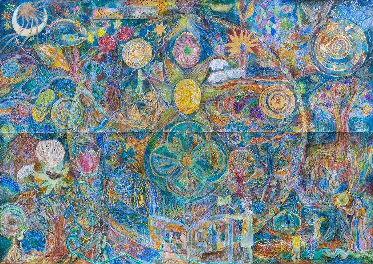 “ Mapping, as a way of drawing and painting, means working on a canvas or sheet of paper to create brush-marks or pencil-marks where intuition, thought and reflection make scenes or stopping points (nodes). The connecting lines, often meandering, become journeys of their own. Imaginary landscapes form, with cities, towns and pathways which may have the presence of a dream place, an experience of heightened visual awareness or visualised ideas about the future.”