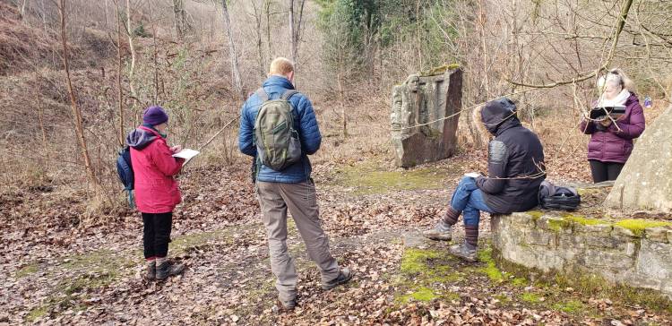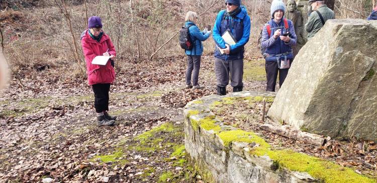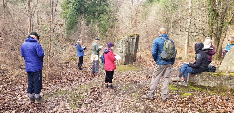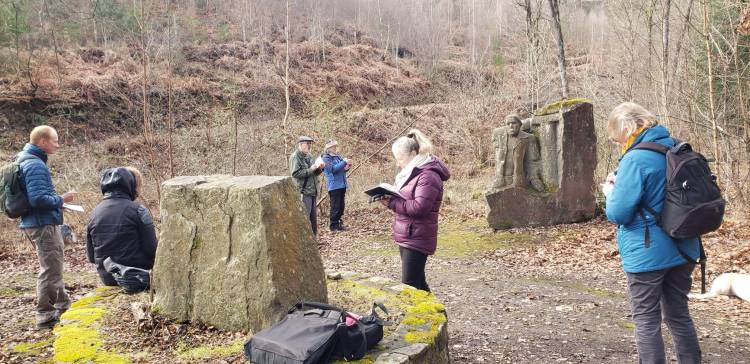 On February 25th, Roger Drury led a Creative Walk from the Stone Works, Cannop Ponds up Dram Way, past the two fallen trees to the monument created in memory of those who died in the Union Pit disaster in 1902, before returning to the starting point. The walk was a mix of environmental archaeology and history whilst the monument was found to be poignant & evocative. Walkers enjoyed noting the changes in the Forest and discovering remnants of history with the security of a guide to lead them. The forest was lined with moss and lichen, fallen trees, leaves underfoot and the pussy willow already blooming. The attendees enjoyed writing and sketching along the way and had a throughly enjoyable morning out in nature.