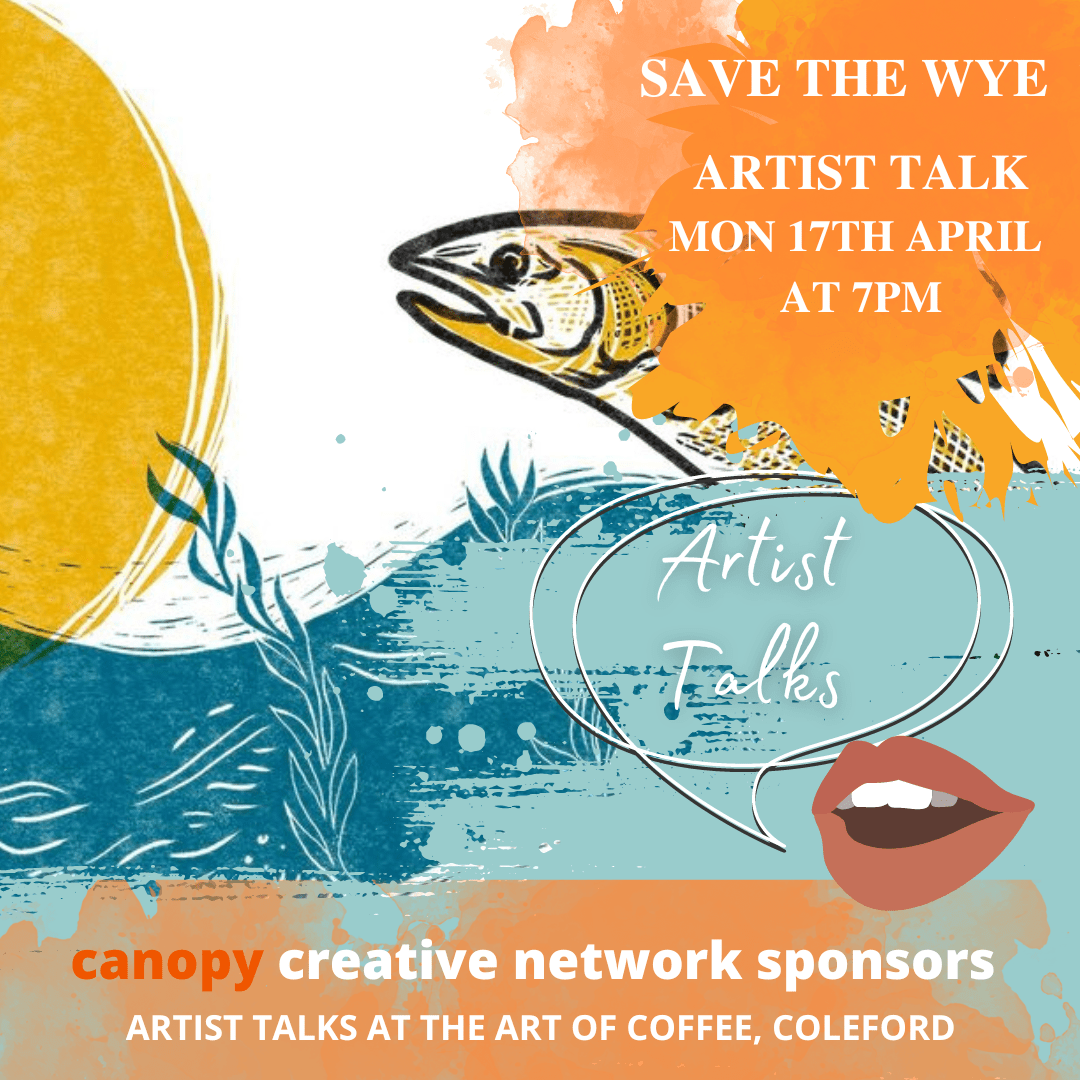 A huge well done to Mollie Meager and Rachel Bomford who organised a very successful ‘Save the Wye’ Artist Talk on Monday 17th April at the Art of Coffee, Coleford as part of the Festival of Words, supported by Canopy. They put in a huge amount of time, energy and effort to bring so many artists and campaigners together.