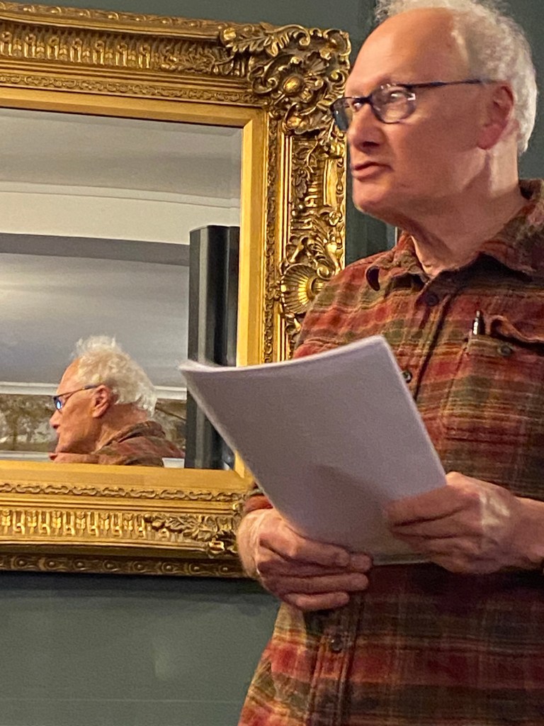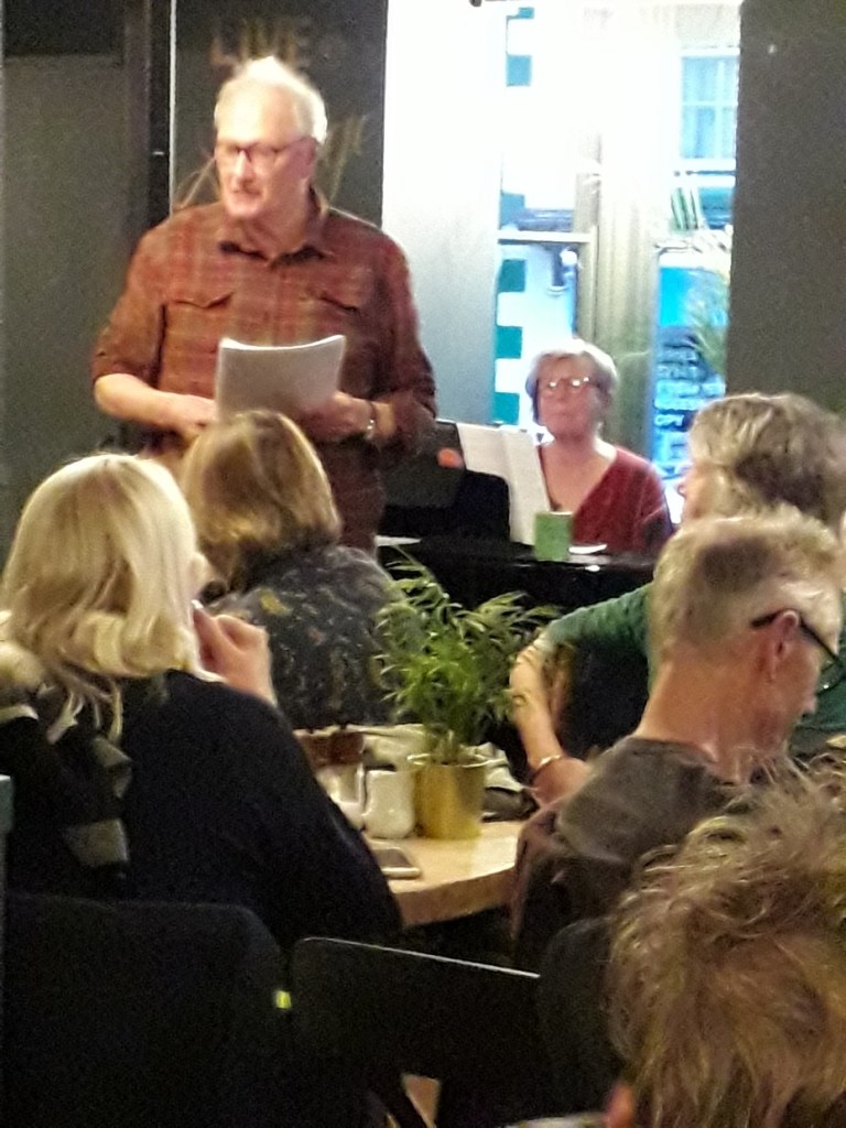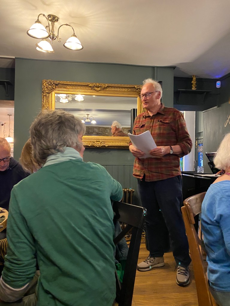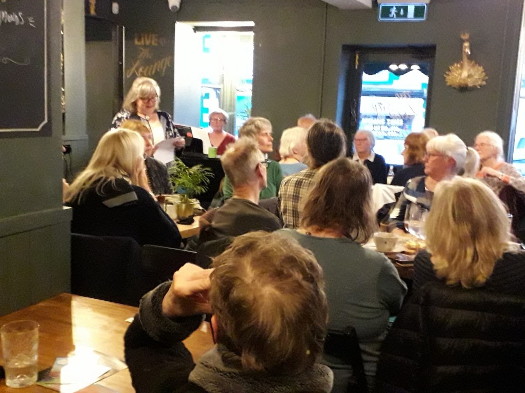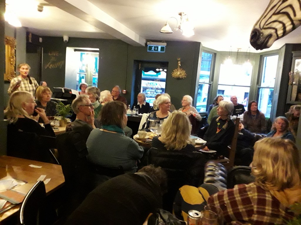 ‘The Art of Coffee’ Coleford was a welcoming venue offering food and drink and equipped with a digital screen which was made use of to show a short film and various images of artists’ work. My main criticism is that ‘The Art of Coffee’ was not big enough for the huge crowd that attended! Seats were in short supply, with standing room only at times but this created a real buzz in the space and reflected the number of people locally who are keen campaigners interested in the arts.