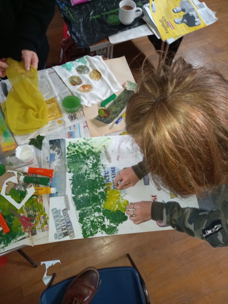 Some participants arrived with canvases which they had already made a start on whilst others brought bags of paper ready to use. Some were clear about their ideas but wanted to extend and develop their work, whereas others came along with an open mind, hoping to be inspired.