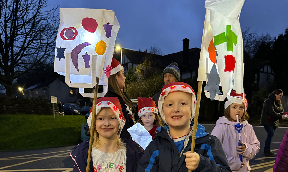 Our lantern parade at the Coleford Christmas lights switch on last Saturday was a glowing success. With funding from Coleford Town Council we went into Coalway Junior’s year 6 class and St John’s C of E Academy year 2 class. Canopy artists worked with the children, their teachers and TAs to create beautiful lanterns inspired by planets and the night sky.
