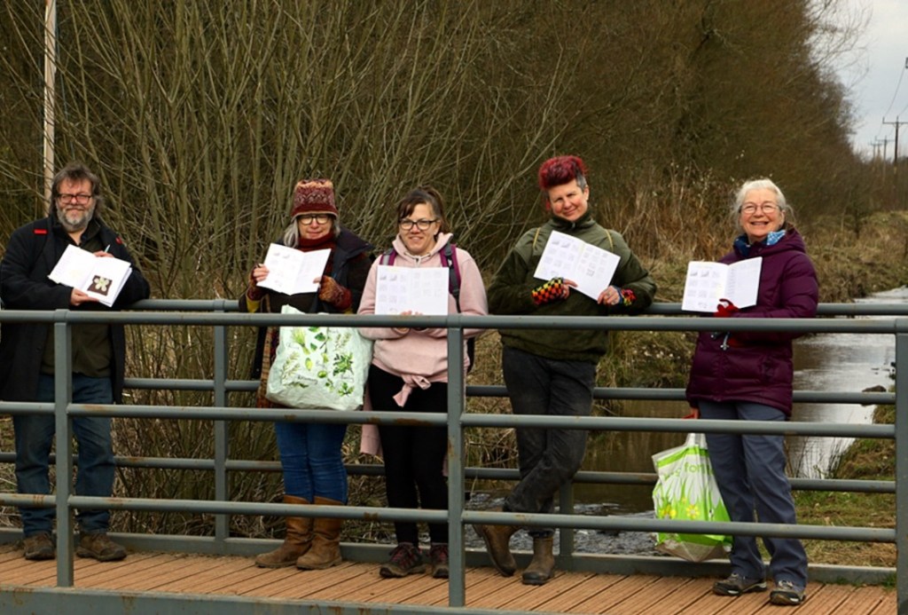 Although I had never considered parts of the visual starting points being eaten by animals, I had very luckily brought primroses from my garden in a couple of plant pots to show the group! I had thought it might be useful to show the flowers close up, if anyone could not bend down to the ground, to examine the shapes of the petals and the colours of the centres. These ‘visual aids’ came to the rescue so the group could closely observe these rather than the ones on the bank.
