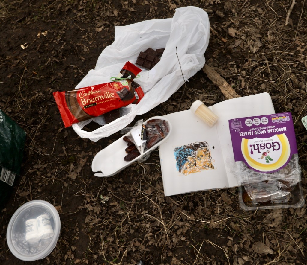 Mixing colours and sampling food on a Creative Walk in Nature was a first! This walk, partnering with Wyldwood Arts as a part of their Fringe Festival in March required considerable preparation because the aim was to mix colours observed in nature and sample foods of similar colour.