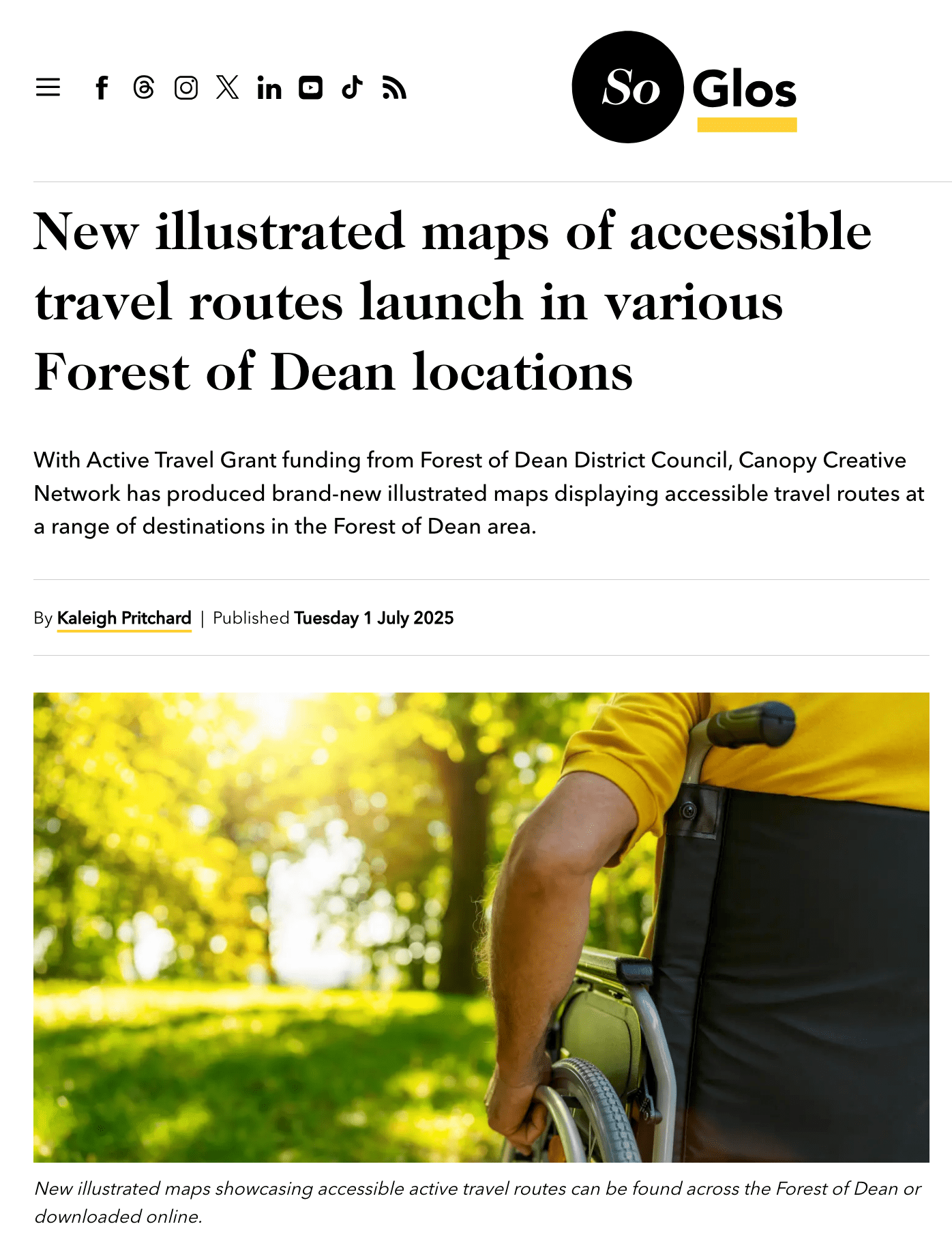 With Active Travel Grant funding from Forest of Dean District Council, Canopy Creative Network has produced brand-new illustrated maps displaying accessible travel routes at a range of destinations in the Forest of Dean area.
