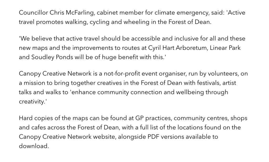 Hard copies of the maps can be found at GP practices, community centres, shops and cafes across the Forest of Dean, with a full list of the locations found on the Canopy Creative Network website, alongside PDF versions available to download.