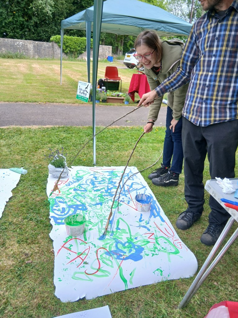 With the lavender plant as inspiration purple paint was scented with lavender oil and the green paint had peppermint oil added to it. Paint brushes were tied to long sticks so that wheelchair users could participate.