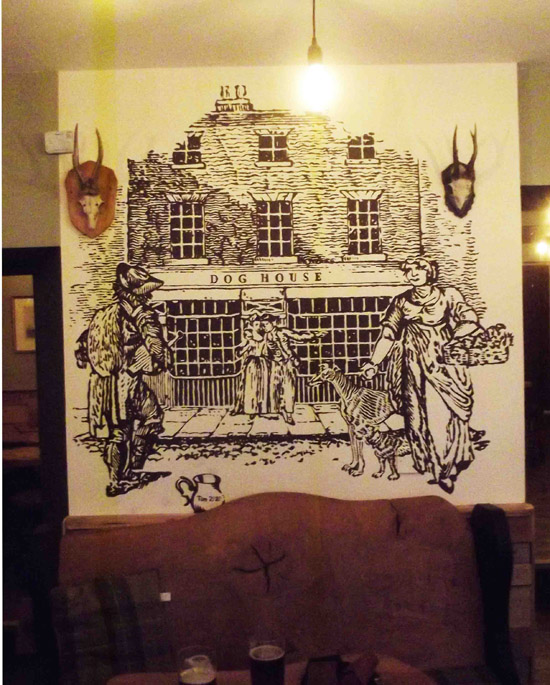 Using your phone (Android only) this Augmented Reality app allows you to see life and movement pop out from two murals. In The Fountain pub, Parkend, you will find Warren James reciting Max Freedman Fisher’s HOOF (hands off our forest) anthem -‘Not for Sale’ – as leaves and birds fly. In The Dog House, Coleford, Thomas Bewick-style 18th century cartoons discuss customers while a dog keeps angels at bay.
