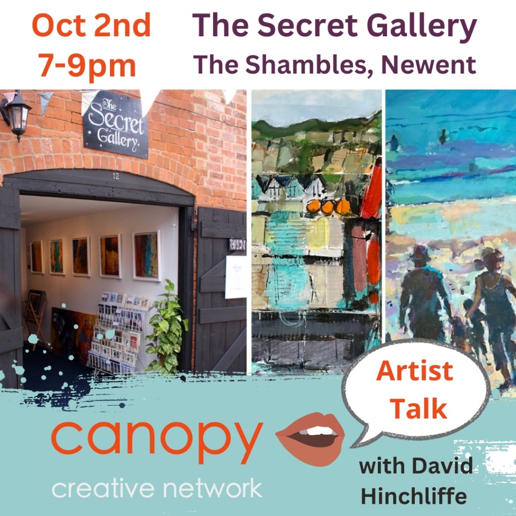 Enjoy a Canopy sponsored Artist Talk at The Secret Gallery in Newent on Weds 2nd October 2024, 7-9pm. Exhibition Opening for ‘In Search of the Light’ and Artist Talk by David Hinchliffe about his artwork and process (Talk at 7.15pm approx.).