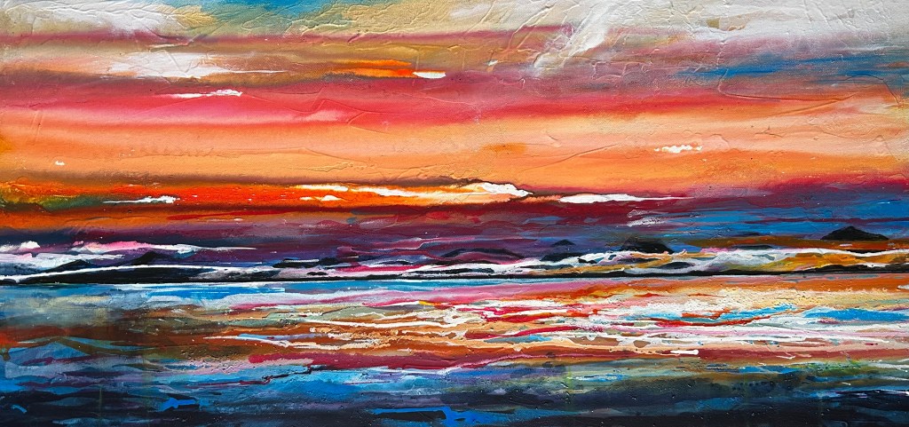 Ru experiments with materials like acrylic, acrylic ink, layering colours and textures to see how far she can push each medium. Through her work, Ru communicates the emotion, the sense of light and energy, the wildness and dynamism of these beautiful landscapes that she finds so captivating. ‘Wild Spaces’ Exhibition by Ru Goodchild runs 30th October – 23rd November, The Secret Gallery, Newent.