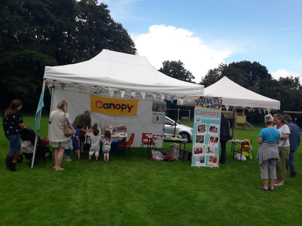 Volunteers from Canopy hold regular promotional stands at events throughout the Forest of Dean where we invite various artists to entertain our audience with storytelling, art workshops and performances whilst also informing visitors of what we are planning for the future and offering ways to get involved.