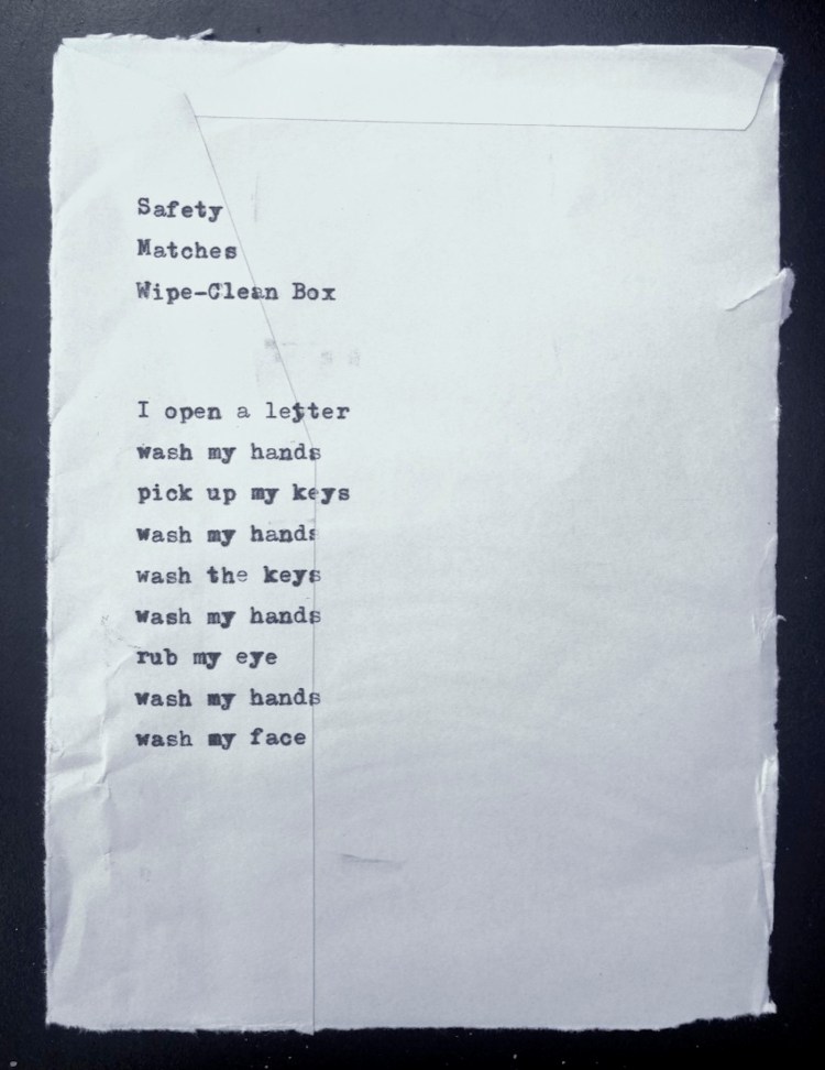 Under lockdown I have been writing. Using the backs of envelopes, torn out pages from old books, clay for squeeze and touch. Using my typewriter for the gesture, the post to send and receive, (and Zoom of course). I was fortunate to work on a collaborative physical installation: ‘In Free Fall’ for the Centre of Gravity exhibition, which interrogated the collaborative act and its inherent tensions; in a world of uncertainty, how do we find agreement?