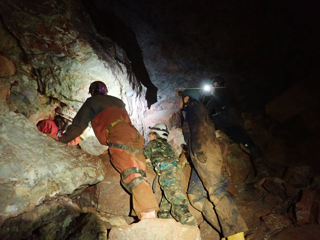 I’d expected that the experience would be physically challenging, but the trips really were more exhausting that I imagined. Some of the caves and mines stretch for miles underground, and there’s a lot of scrambling, squeezing and wriggling involved. Amazingly, the cavers often have full mental maps of the area, having memorised all the passages and how they connect. In the old mines there was evidence of history everywhere, which GSS members were really knowledgeable about. We saw deposits of ore, old pick marks, wooden struts, ochre, and smaller mining areas where children would have been put to work.